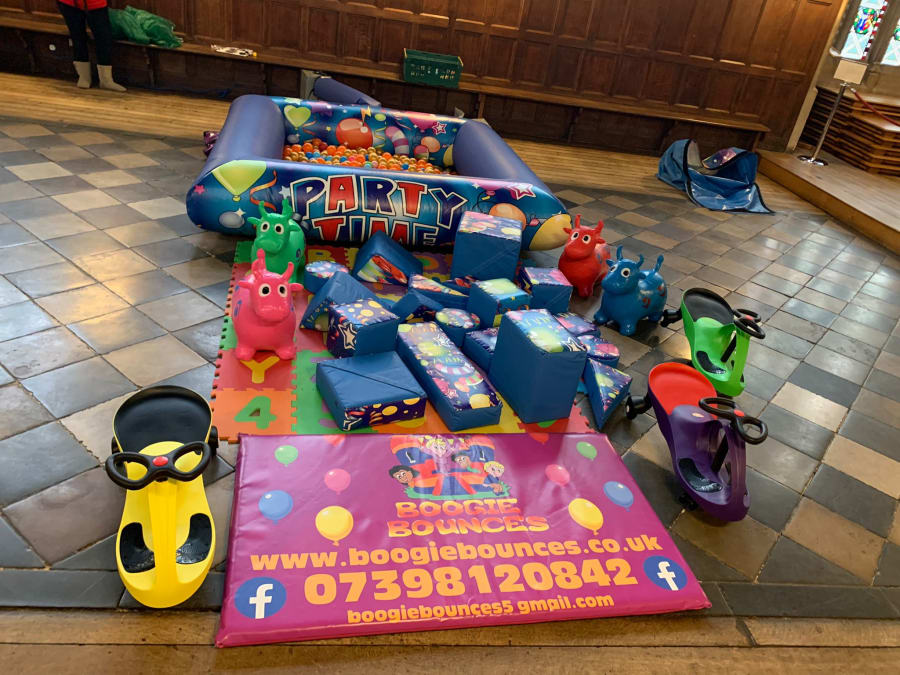 Party Soft Play. 1 Ball Pool, 4 Diddy Cars, 4 Animal Hoppers and soft play building blocks. Perfect for children.